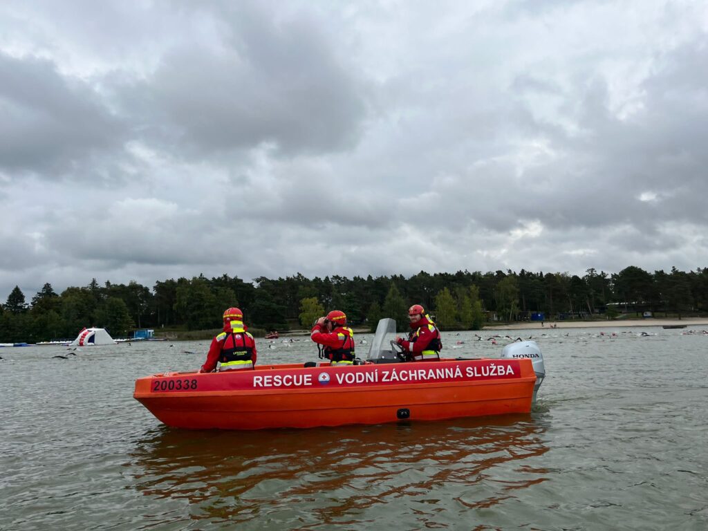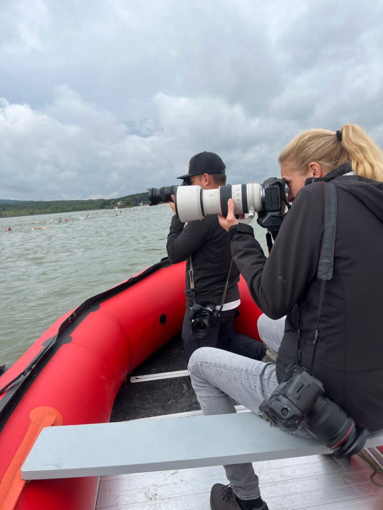 Jak je mým zvykem, nalodil jsem fotografy na člun, aby mohli zachytit co nejlepší fotky přímo z vody. Zároveň jsme tvořili záchranný doprovod pro případ, že by se něco stalo. Naštěstí vše proběhlo bez problémů. Počasí se měnilo jako disciplíny, chvíli slunce, chvíli déšť, a nakonec se objevila i krásná duha.